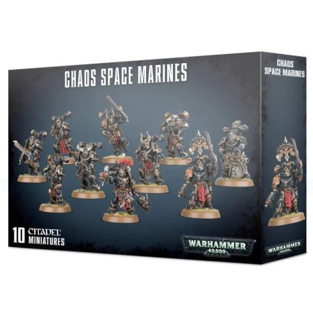 Les Chaos Space Marines forment l'assise de toute armée du Chaos. Capables de déchiqueter l'ennemi de loin au bolter aussi facilement qu'en mêlée dans un bain de sang, ils peuvent s'équiper pour tous les rôles tactiques que vous désirerez leur assigner. Ajoutons à cela les Marques du Chaos, les icônes du Chaos et l'armement de votre choix, et ils ont leur place dans toutes vos listes d'armée.