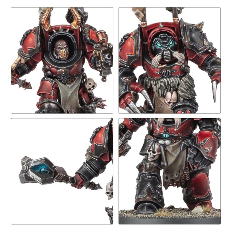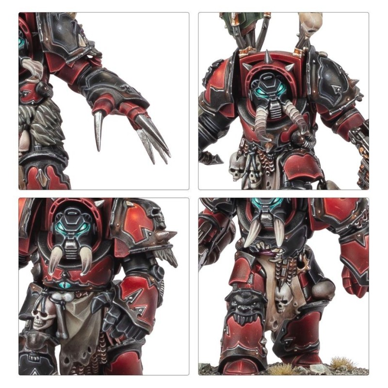 Les Terminators du Chaos sont fournis avec une sélection d'options d'armes, dont 5 armes combinées, trois gantelets énergétiques, un lance-flammes lourd, un autocanon Reaper, un poing tronçonneur et une paire de griffes Lightning. Les têtes, épaulières et râteliers de trophées sont également interchangeables entre toutes les figurines.