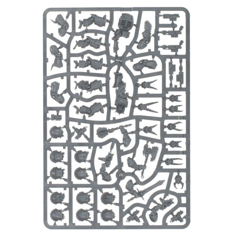 Le kit contient 5 Chaos Terminators multipièces en plastique, pouvant chacun être équipé de diverses armes de tir et de mêlée. Il propose les options suivantes: