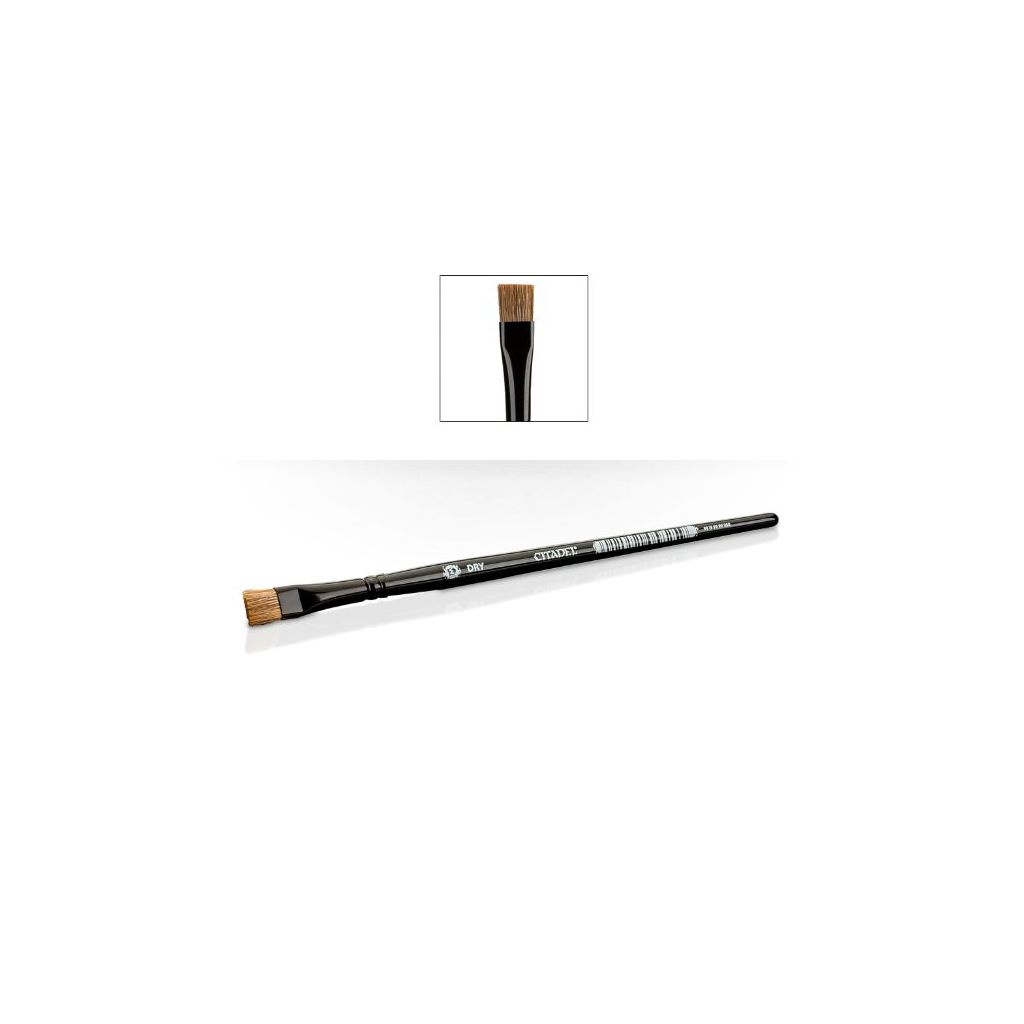 Ce pinceau moyen (M Dry) est fait d'un mélange de fins poils de bœuf et de poils synthétiques pour obtenir un bon compromis entre raideur et longévité. La forme aplatie permet de traiter les reliefs avec constance, l'idéal pour le brossage à sec!