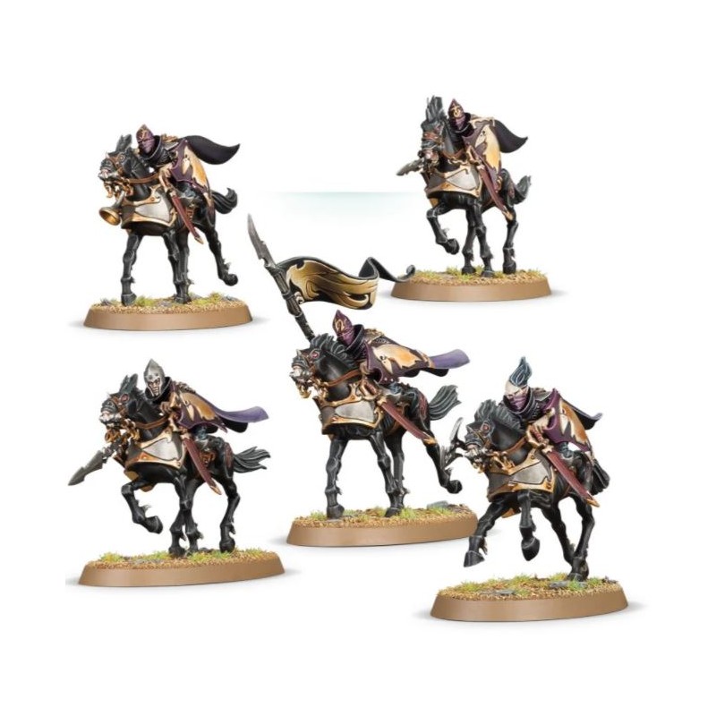 Les Dark Riders ont pour montures 5 Dark Steeds et se distinguent par leurs 5 torses avec cape. Les diverses options des figurines comprennent 5 arbalètes à répétition rangées; 4 lance; 5 boucliers à motif en relief différents; 5 épées dans leur fourreau; et 14 têtes au choix (6 casquées, 5 masquées, 2 avec foulard sur la bouche, et 1 à double tresse pouvant désigner l'Herald). Il y a aussi des pièces pour représenter un porte-étendard et un sonneur de cor.