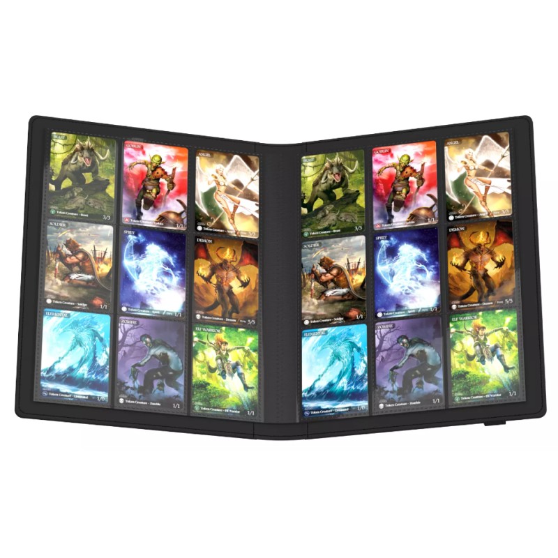 Portfolio haute qualité avec couverture XenoSkin innovante avec texture antidérapante robuste, offrant 20 pages à 18 poches reliées pour toutes les cartes de jeu de taille standard et japonaise.