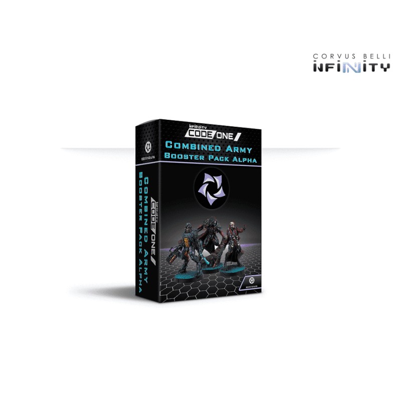 Infinity - Combined Army - Booster Pack Alpha est une boîte contenant 3 figurines en métal pour le jeu Infinity. À monter et à peindre.