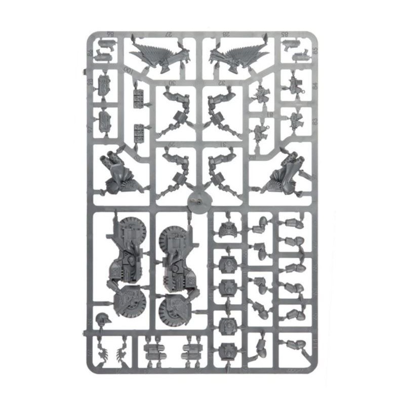 Ce kit contient 122 composants en plastique permettant d'assembler une unité de trois Chevaliers Noirs de la Ravenwing. Il est fourni avec une planche de décalcomanies Dark Angels et trois socles ovales Citadel de 75 x 41,5mm.