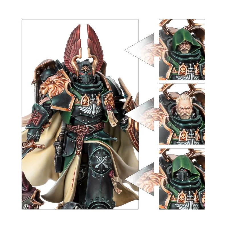 C'est une figurine époustouflante digne du statut légendaire d'un Primarque, qui arpente le champ de bataille dans une armure chevaleresque décorée de son héraldique personnelle et des symboles des Dark Angels. Il est accompagné de deux mystérieux Guetteurs des Ténèbres et peut être assemblé avec une tête parmi quatre au choix: une tête nue, une tête voilée par une capuche, un heaume à cimier, et un heaume dissimulé sous une capuche.