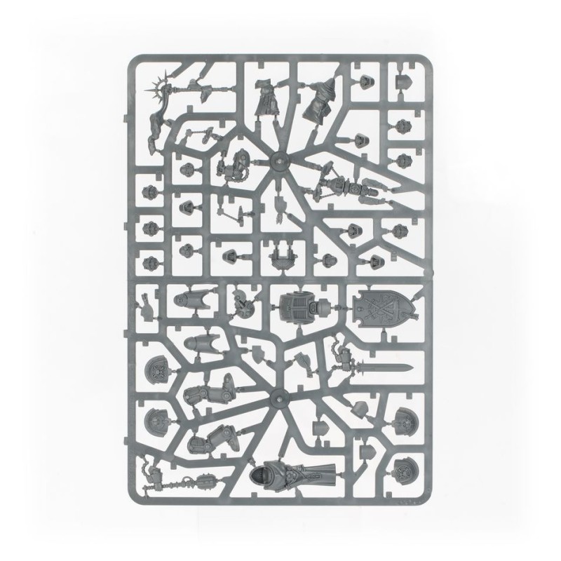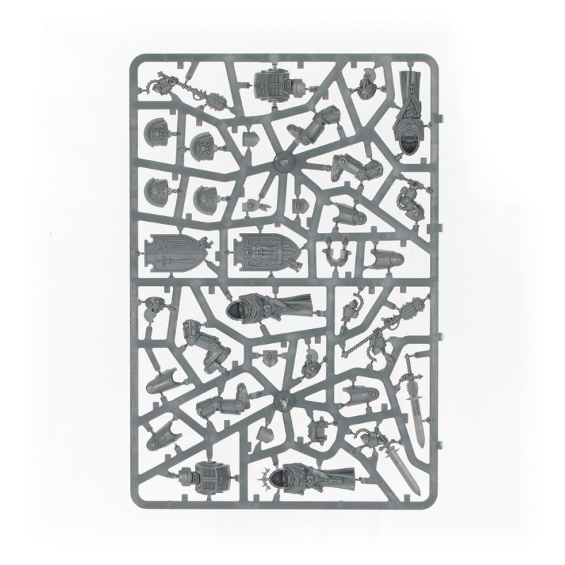 Ce kit incroyable contient une balise de téléportation et un Guetteur des Ténèbres portant un encensoir, tous deux fournis avec leurs propres socles. Vous trouverez également de nombreuses options esthétiques dont des positions de bras interchangeables, différents styles de boucliers, un choix d'écussons et bien assez de têtes encapuchonnées ou casquées pour équiper toute votre escouade dans le style que vous souhaitez.