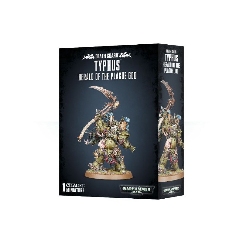 Description du produitTyphus, seigneur de la Première Compagnie de la Peste de Mortarion et hôte de la Ruche du Destructeur, est le plus redouté des amiraux des Flottes de la Peste. Voyageant à bord de son antique vaisseau, le Terminus Est, Typhus répand la contagion et la peine à travers la galaxie. Typhus a indéniablement la bénédiction de Nurgle. Depuis dix mille ans, c'est la plaie des mondes impériaux; le sillage de la flotte de Typhus est synonyme d'épidémie, et de multiplication de zombies de la peste dont la morsure affecte de nouvelles victimes. Des milliards de défunts sont revenus à la non-vie, et l'énergie prolifératrice du Chaos fait muter cette maladie en vecteurs de plus en plus terrifiants.
