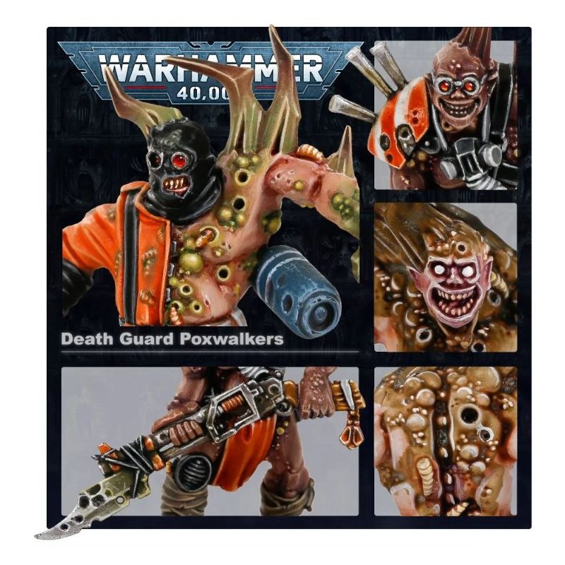 Description du produitLes hordes nauséabondes des Véroleux se traînent sur le champ de bataille jusqu'à submerger leurs ennemis sous une vague pourrissante de mains crochues, de dents avides et de tentacules frétillants. Ce sont les victimes des maladies de Nurgle, transformées en armes non-vivantes par les cruels maîtres de la Death Guard.