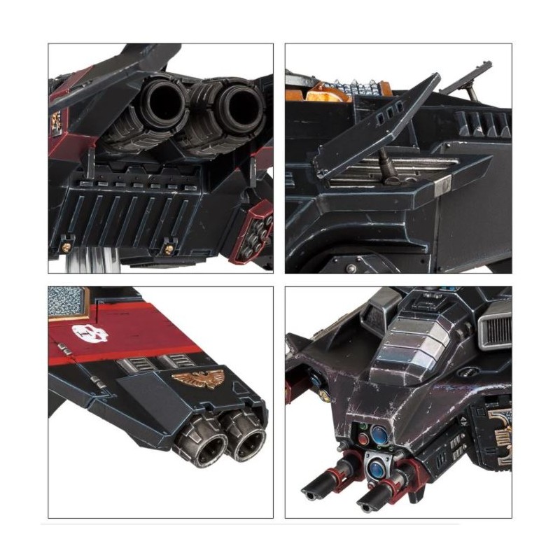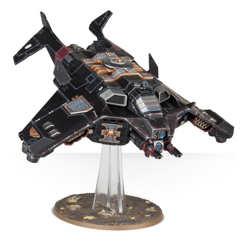 Description du produitConsidérablement plus avancé que les aéronefs impériaux d'apparence similaire, le Corvus Blackstar est digne de convoyer une Deathwatch Kill Team pour sa brutale mission. Optimisé pour la chasse à l'extraterrestre, étonnamment agile, il fait hurler à mort ses armes tout en descendant du ciel vers les cibles clés de la mission. Les halo-lanceurs brouillent les contours du Corvus Blackstar et ses écoutilles jumelles s'ouvrent pour déverser sa cargaison de spécialistes de la Deathwatch directement au contact.