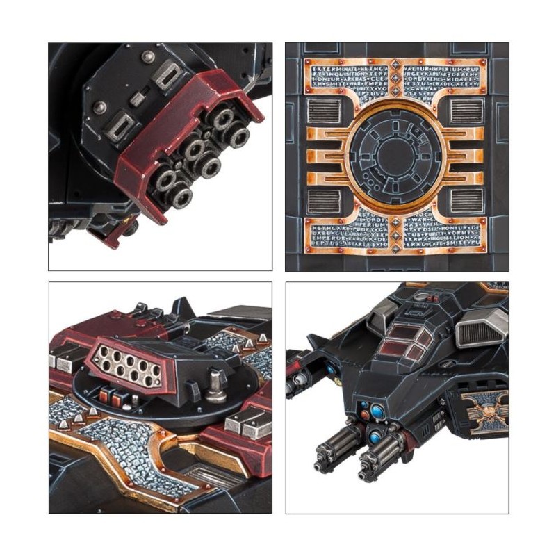 Ce kit plastique contient tous les composants nécessaires pour assembler un Corvus Blackstar, muni d'un canon d'assaut jumelé (remplaçable en option par un canon laser jumelé), de missiles Stormstrike (remplaçables par un lance-roquettes Blackstar jumelé), d'une panoplie de senseurs et de contre-mesures, et d'un blindage en céramite. Ce kit se compose de 83 composants, et d'un socle ovale Citadel de 120x92mm avec tige transparente.