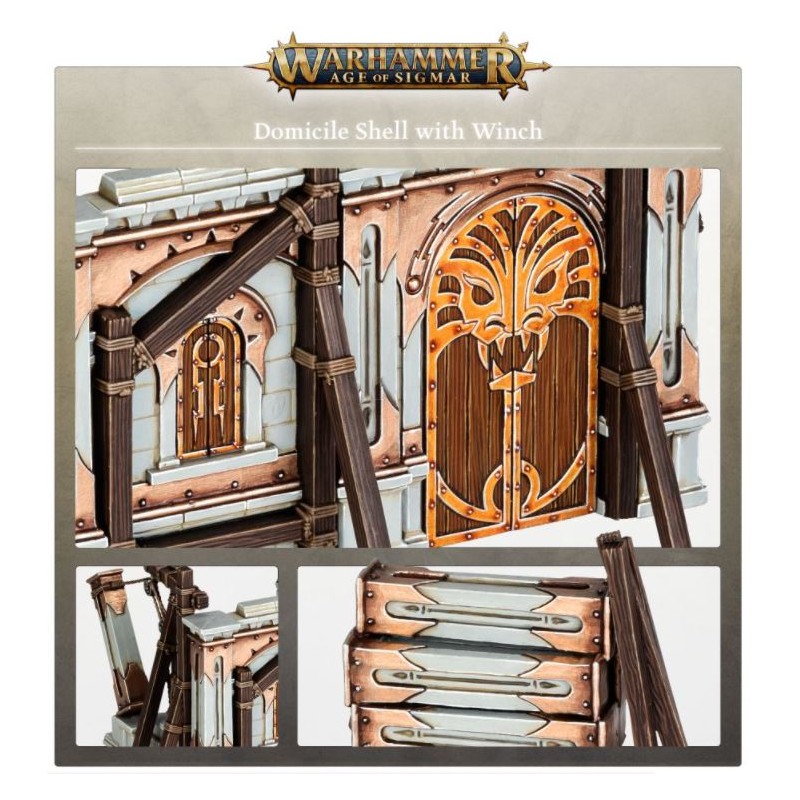Ce kit se compose de 17 pièces plastique, que vous pouvez assemblez en 1 section de mur de Maison en Chantier avec Treuil, destinée aux parties de Warhammer Age of Sigmar. Ce kit est fourni non peint et nécessite assemblage.