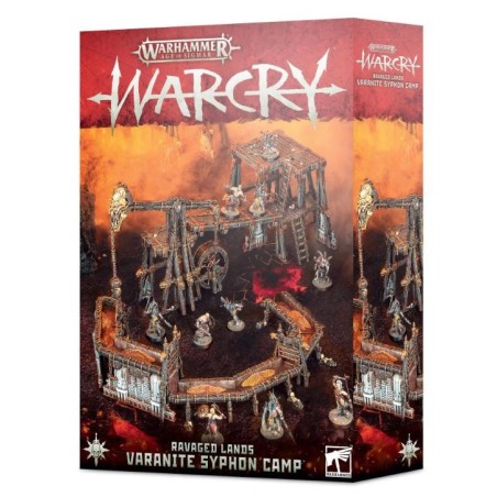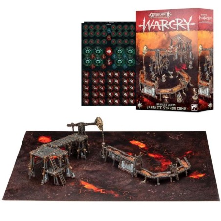 La boîte inclut aussi un champ de bataille de Dépôt de Varanite – un plateau de jeu double face pliant de 22" x 30", la taille parfaite pour des parties de Warcry. Une face représente les fosses en fusion d'une mine de varanite, et l'autre un désert de cendre courant aux Huit-points. Elle contient également deux feuilles de pions double face, pour un total de 79 pions permettant de suivre les activations, les objectifs, les dégâts et d'autres choses lors de vos parties de Warcry.