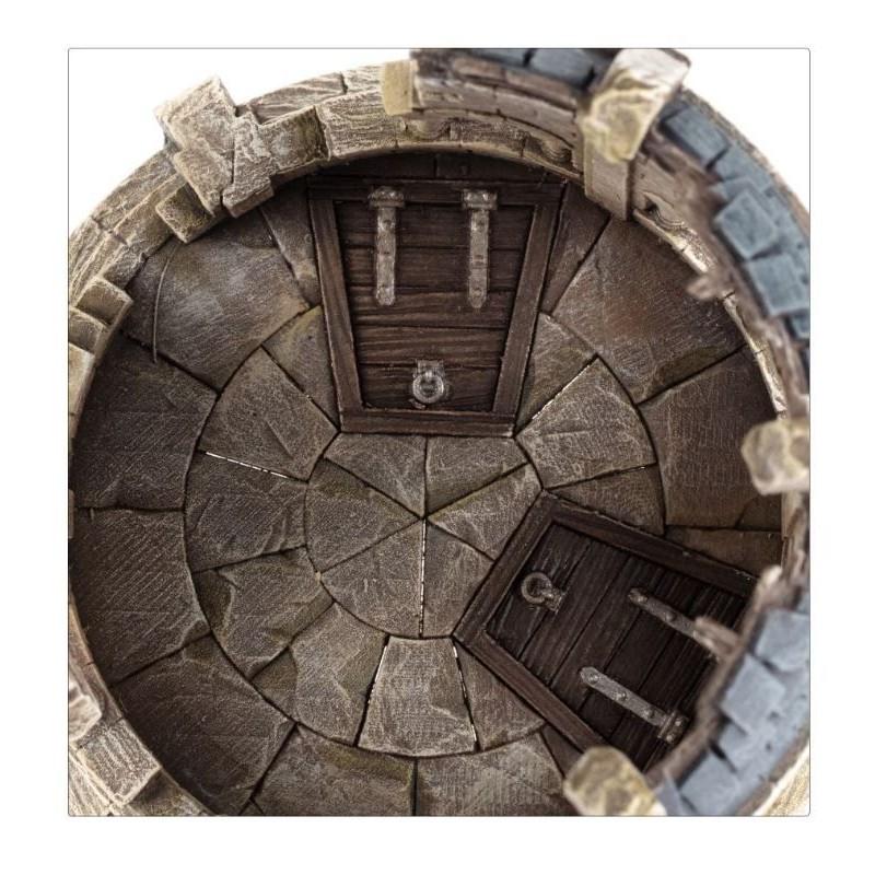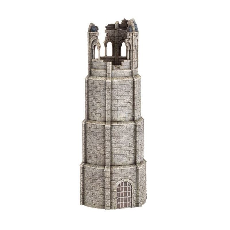 Ce kit plastique permet d'assembler une Gondor Tower, une puissante flèche de pierre robuste, avec des portes en bois renforcées de fer. Cette tour mesure environ 30cm de haut et peut être dotée d'une, deux ou trois portes. Vous pouvez assembler le toit en ruines, comme s'il avait été détruit par un tir de catapulte ou par les ravages du temps, avec des gravats supplémentaires pour décorer sa base. Vous pouvez également assembler une tour intacte avec toit en forme de dôme, conçu pour être monté sans colle, ce qui vous permet de le retirer et de combattre à l'intérieur en cours de partie. Quoi qu'il en soit, le toit détaillé offre assez de place pour placer vos figurines à l'intérieur.