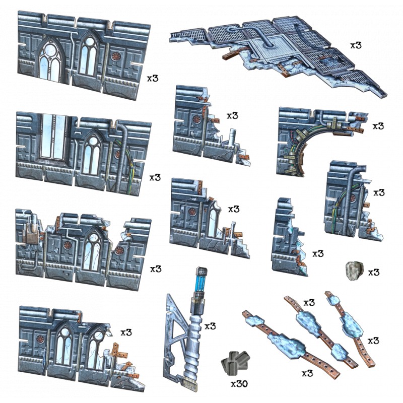 Cette boîte contient tout ce dont vous avez besoin pour construire un bloc urbain gothique en ruines à plusieurs niveaux, adapté à tous les jeux de science-fiction 28-35mm dans un futur sombre qui ne connaît que la guerre (!). Toutes les pièces sont modulaires et peuvent être assemblées dans n'importe quelle combinaison que vous choisissez pour une configuration différente à chaque fois. Le set peut être complété par d'autres sets de la gamme Battle Systems terrain.