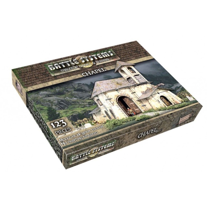 Cette boîte contient tout ce dont vous avez besoin pour construire une imposante chapelle avec clocher et grande salle, adaptée à de nombreux jeux de fantaisie et historiques de 28-35 mm. L'intérieur est entièrement détaillé et le toit et l'étage supérieur sont amovibles. L'ensemble est livré complet avec divers accessoires afin de donner vie à votre table de jeu. De nombreuses pièces sont modulaires et peuvent être assemblées selon différentes combinaisons ou mélangées et assorties au reste de la gamme.