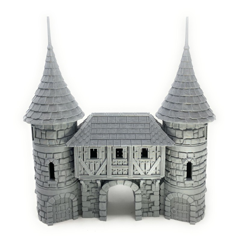 Description du produitPorte de ville imprimée en 3D, avec toit et niveaux amovibles et intérieur détaillé. La porte de ville au design complexe peut être utilisée comme élément de terrain pour votre jeu de table ou comme partie intégrante de votre village médiéval miniature. Dans tous les cas, elle attire tous les regards !
