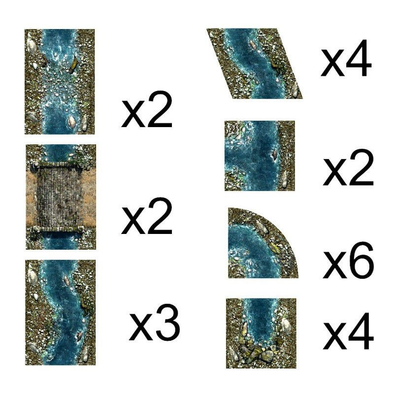 Description du produitPièces de terrain 2D en néoprène de haute qualité compatibles avec tous les jeux de rôle. Librez vos batailles sur une scénario épique traversé par une rivière sauvage de 10 cm (4 pouces) de largeur, avec des poissons, des nénuphars et des rapides. Les ponts de pierre et les roches dispersés permettent différents mécanismes de jeu, selon votre imagination!