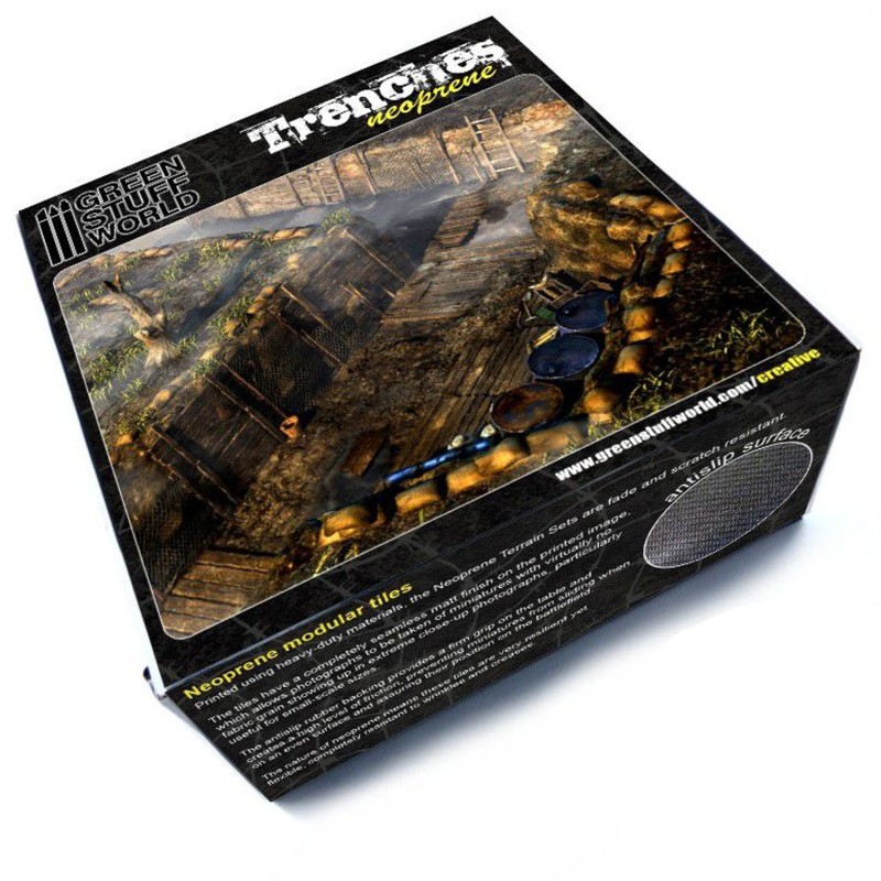 Pièces de terrain 2D en néoprène de haute qualité compatibles avec tous les jeux de rôle. Offrez à vos combats une bonne expérience de guerre de tranchées, avec des gestes vifs et un réalisme surprenant. La tranchée a une largeur de 8 cm (3 pouces), ce qui lui permet de délimiter la zone de jeu avec deux ou trois figures, l'une côte à côte, avec un pouce de base.