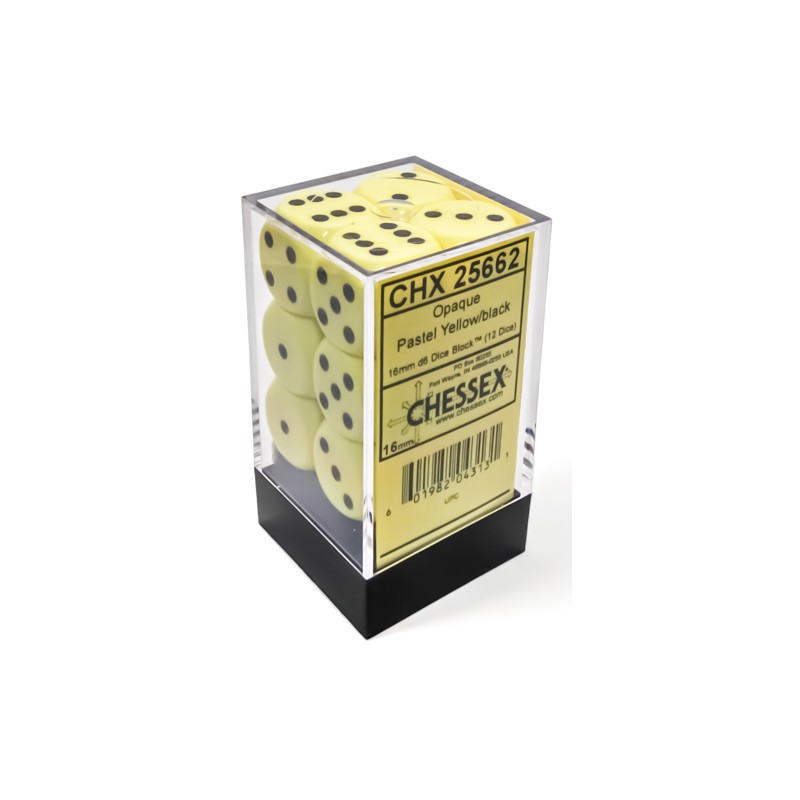 Dés: Set de 12 Dés 6 Pastel Jaune / Noir