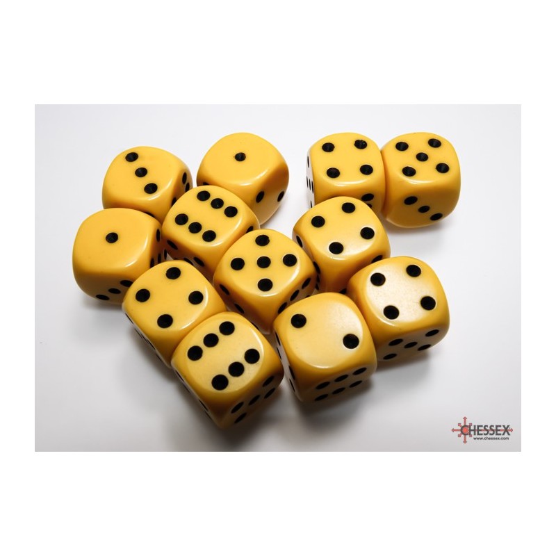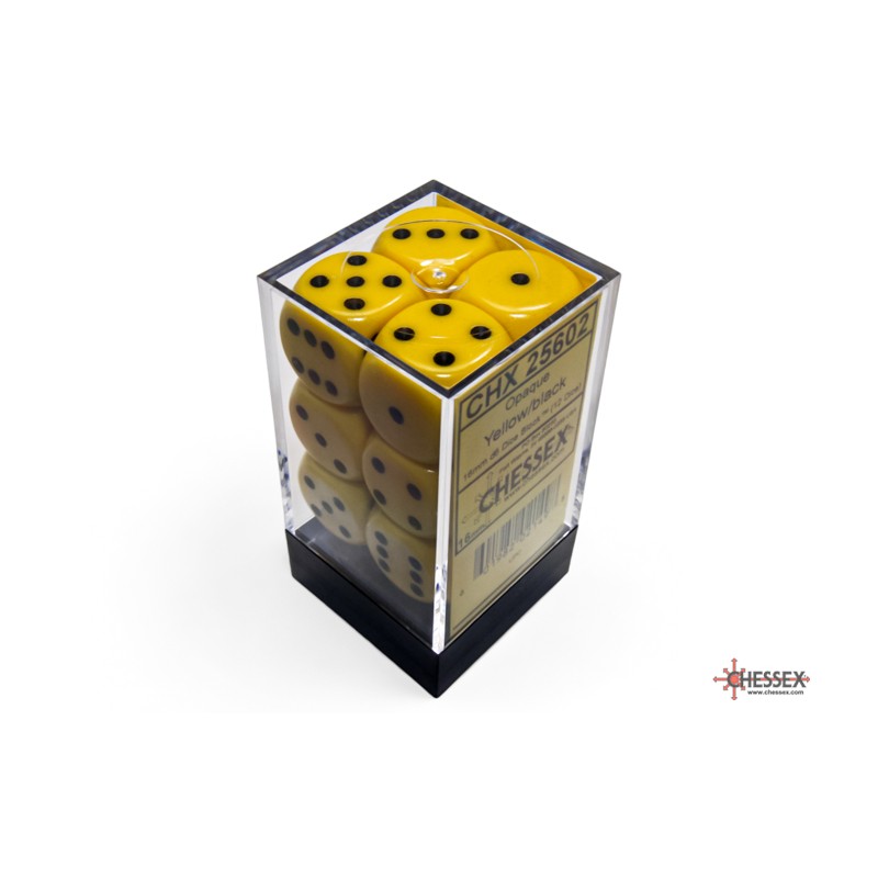 Dés: Set de 12 Dés 6 Opaque Jaune / Noir