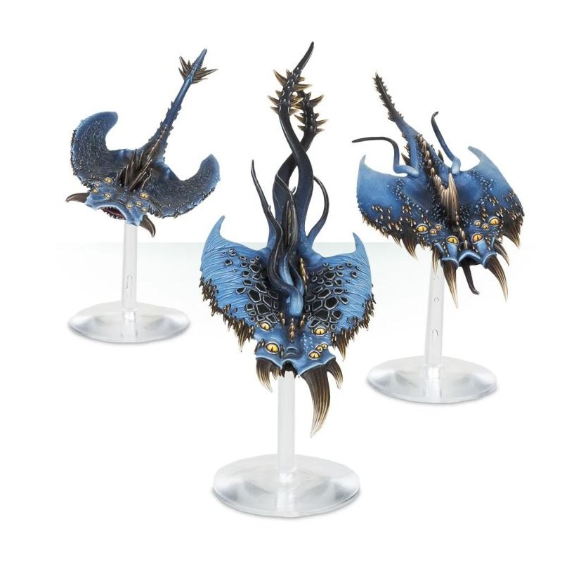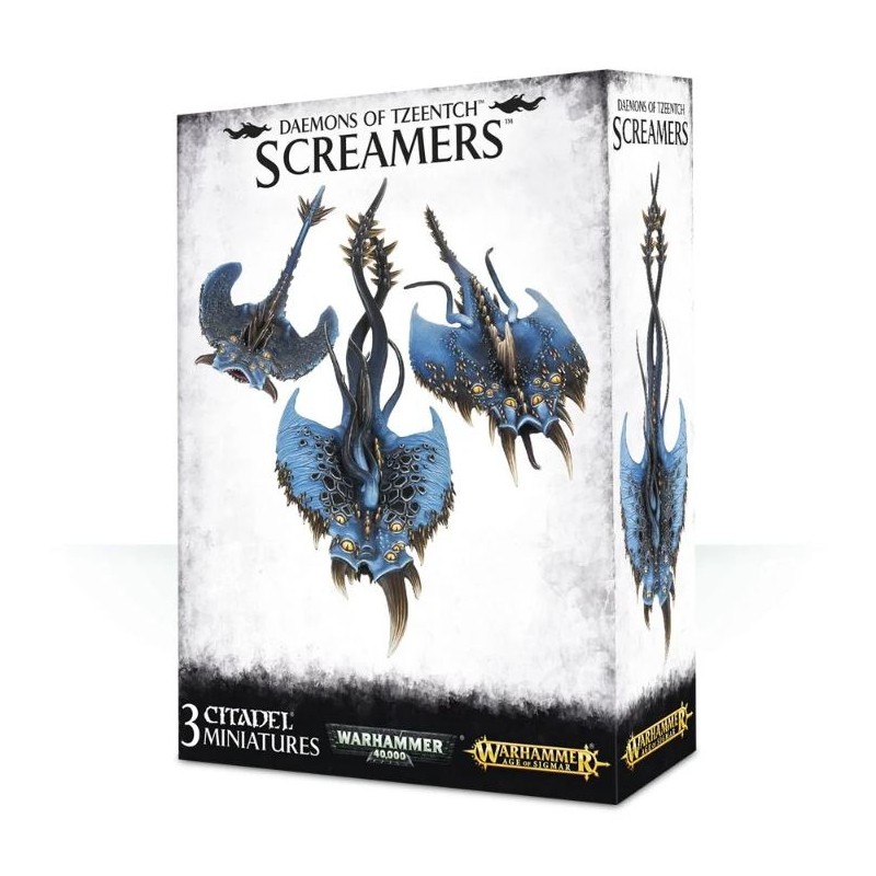 Ce kit plastique contient les composants nécessaires pour assembler 3 Screamers of Tzeentch, d'étranges raies élancées, couvertes d'yeux, de cornes et de nagoires promptes à taillader l'ennemi.