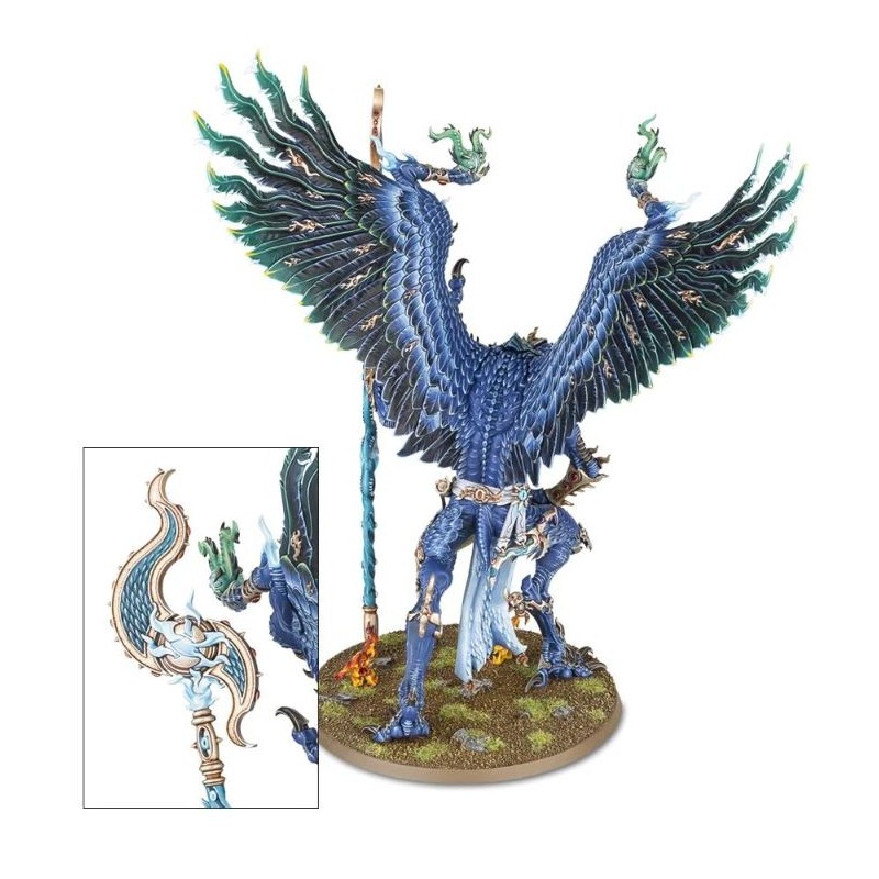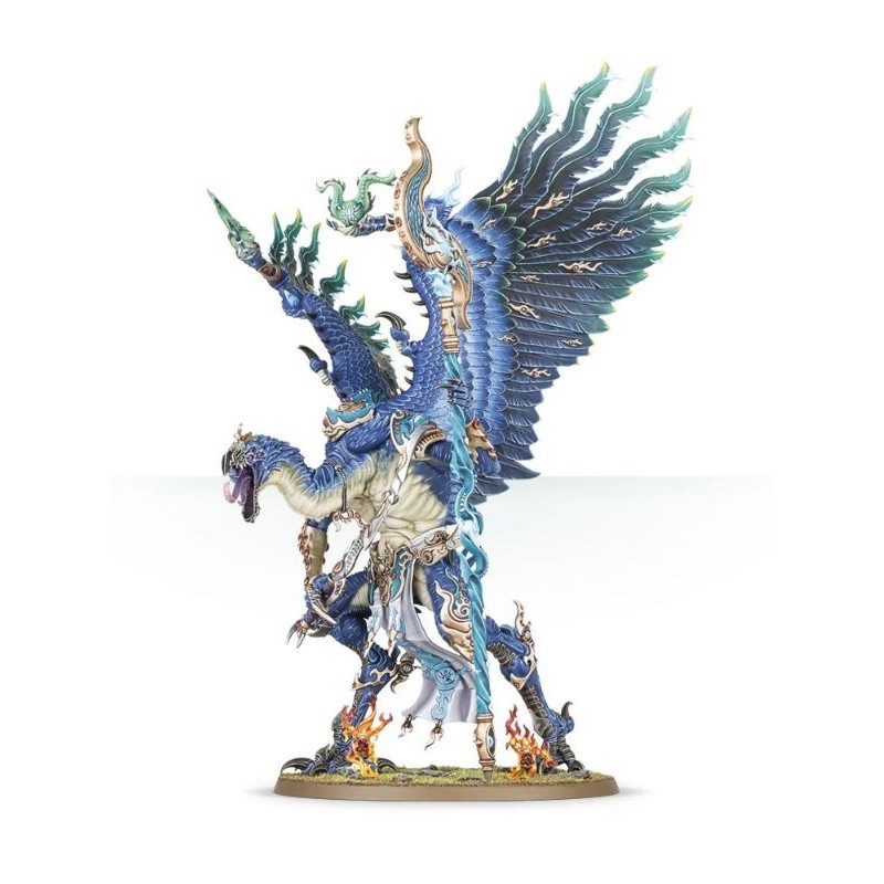 Description du produitDémons majeurs de Tzeentch entre tous, les Lords of Change irradient la magie brute. Rien qu'en pointant une serre, un Lord of Change peut plonger ses ennemis dans un cauchemar, ou les vaporiser avec les maleflammes de Tzeentch. Un tel être peut dérober les sorts adverses à son profit, ou projeter des rayons mutagènes avec son sceptre de sorcier pour détruire des formations ennemies entières.