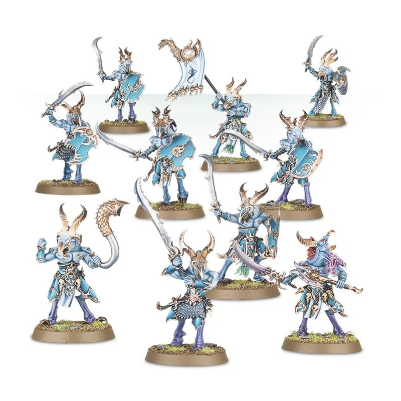 - Permet d'assembler 10 Tzaangors très personnalisables avec des paires d'armes ou des boucliers