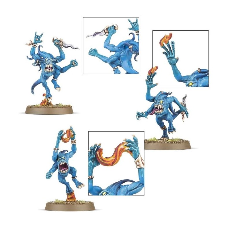 Ce kit plastique contient les composants nécessaires pour assembler 10 paires de Brimstone Horrors of Tzeentch. Ces petites créatures de malfaisance pure dansent sur leur socle telles des flammèches.
