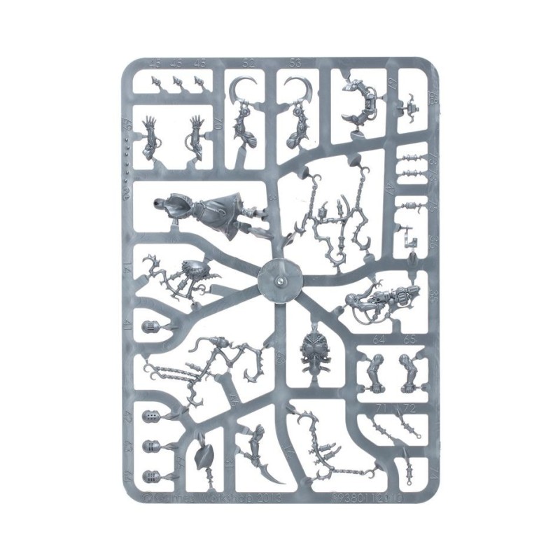 Ce kit en plastique permet d'assembler 10 Gorgones, des tortionnaires ambulants pour vos armées de Drukhari dans les parties de Warhammer 40,000. Ils sont idéaux pour prendre les objectifs, et une fois en place, il est difficile de les en faire partir. Leurs figurines sont aussi incroyablement faciles à personnaliser, pour vous permettre de vivre votre rêve de devenir un Hémoncule.
