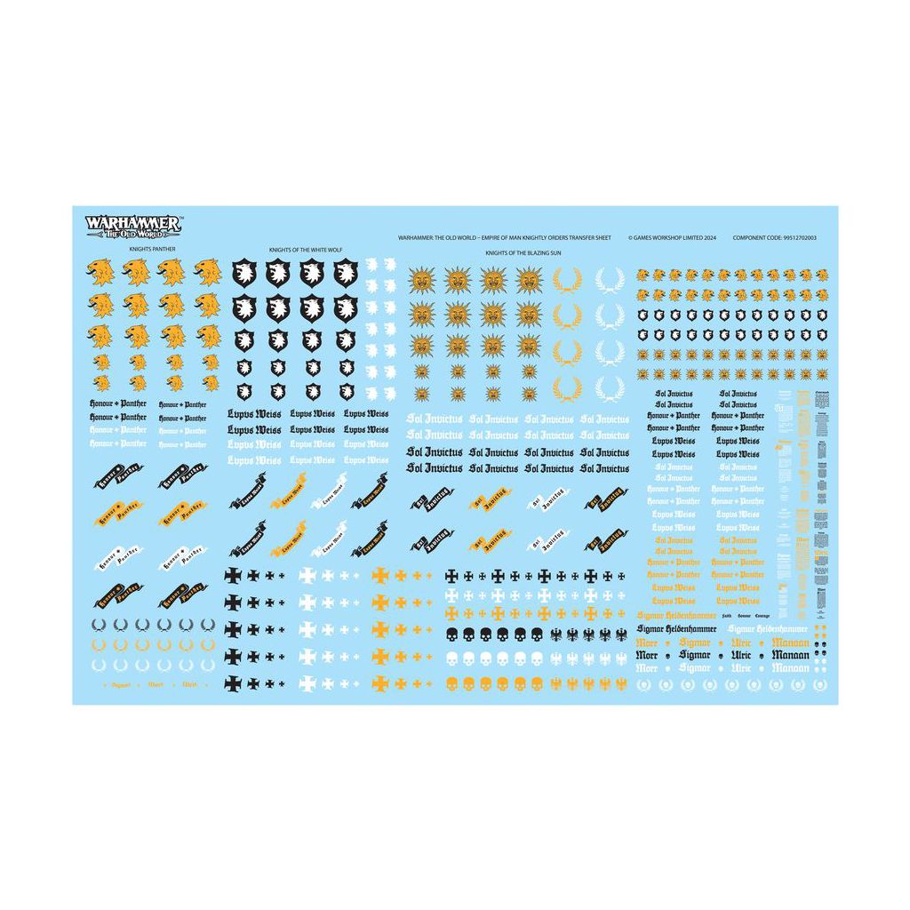 Ce set contient aussi 1x Planche de Décalcos des Chevaliers de l'Empire, proposant 440x décalcos de qualité pour personnaliser encore plus vos figurines.