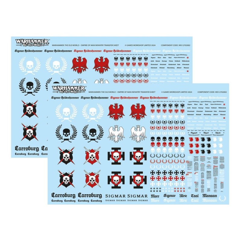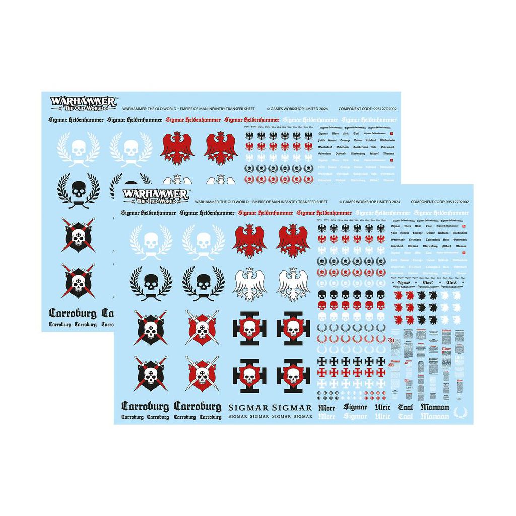 Il contient aussi 2x Planches de Décalcos de l'Infanterie de l'Empire de l'Homme, proposant chacune 290x décalcos de qualité pour personnaliser encore plus vos figurines.