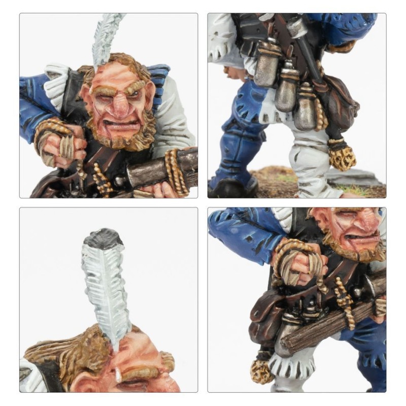 Description du produitLes Ogres sont des créatures massives et bien bâties, et d'une intelligence tout juste adaptée à suivre des ordres, ce qui fait d'eux des soldats mercenaires idéaux. Ils sont capables de porter au combat des canons légers comme on le ferait d'une arquebuse, afin de libérer des salves de dangereuse mitraille sur les ennemis de l'Empire.