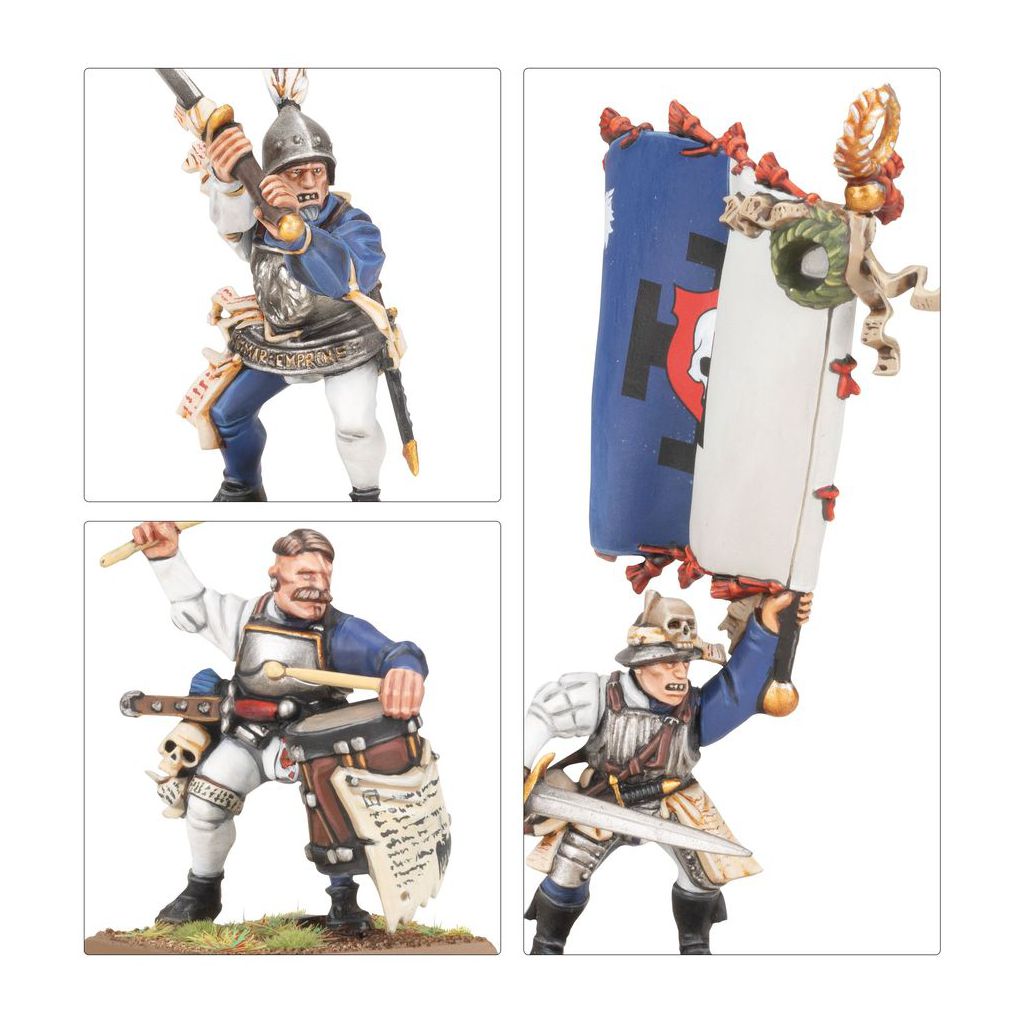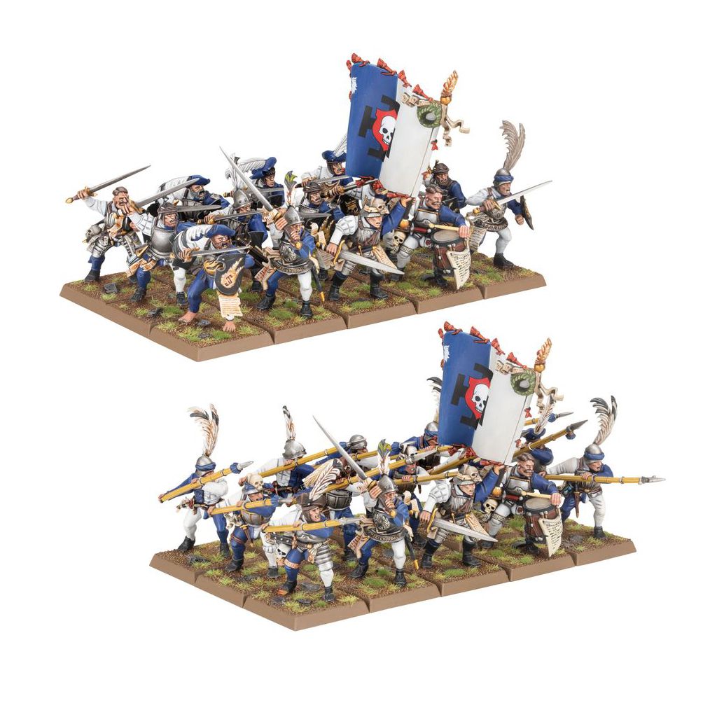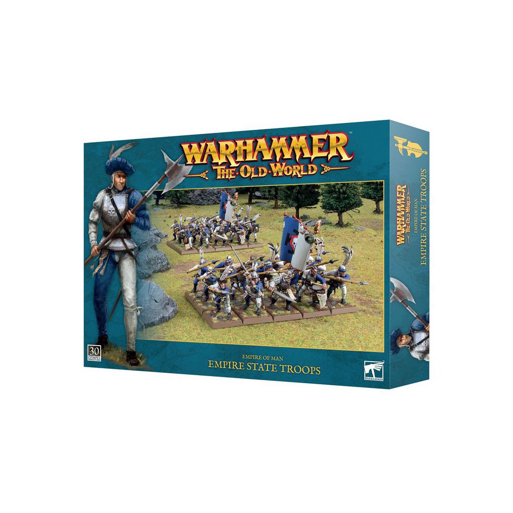 Ce kit en plastique permet d'assembler 30 soldats des Troupes Régulières de l'Empire pour les armées de l'Empire de l'Homme dans les parties de Warhammer: The Old World. Ils peuvent être déployés en une seule grosse unité de 30 figurines, ou en deux unités de 15 soldats chacune. Le kit comprend les éléments nécessaires pour assembler des Champions, porte-étendards et musiciens en option pour les deux unités. Toutes les figurines peuvent être armées au choix de hallebardes ou de lances, ce qui vous permet de vous adapter à tout adversaire.