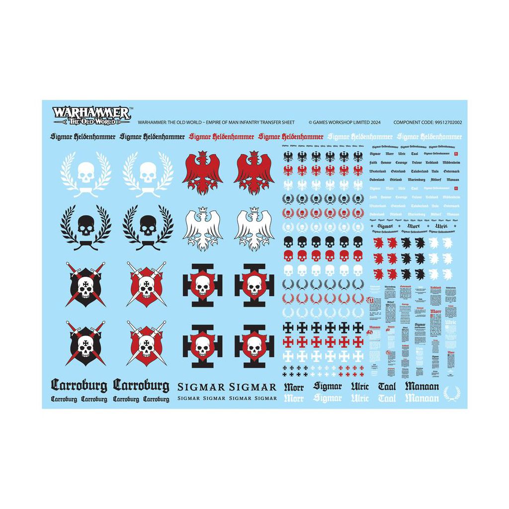 Ce set contient également 1x Planche de Décalcos d'Infanterie de l'Empire de l'Homme, comprenant 290 décalcos de grande qualité pour vous aider à décorer vos figurines.