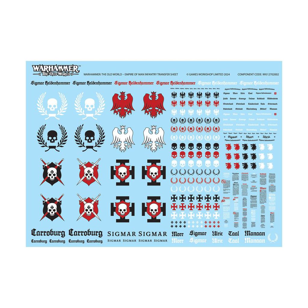 Ce set contient également 1x Planche de Décalcos d'Infanterie de l'Empire de l'Homme, proposant 290 décalcos de grande qualité pour décorer vos figurines.