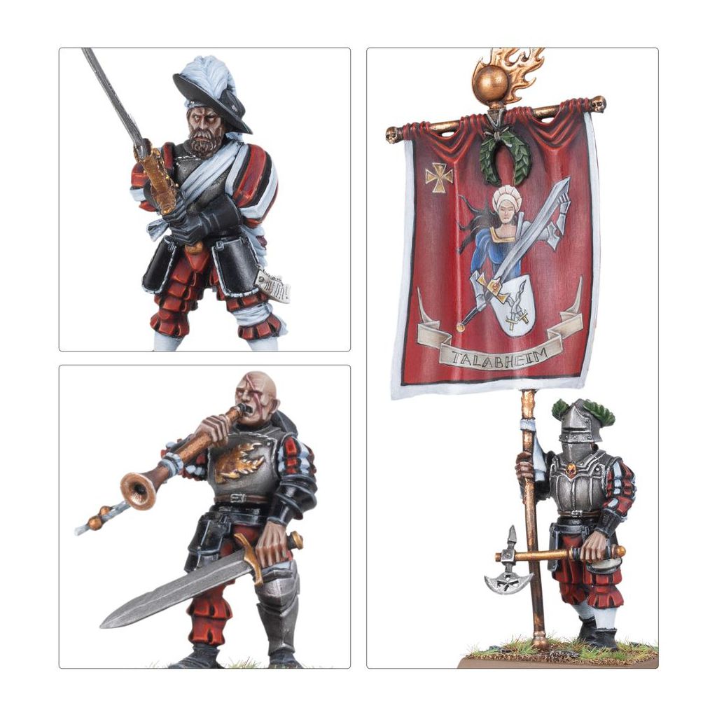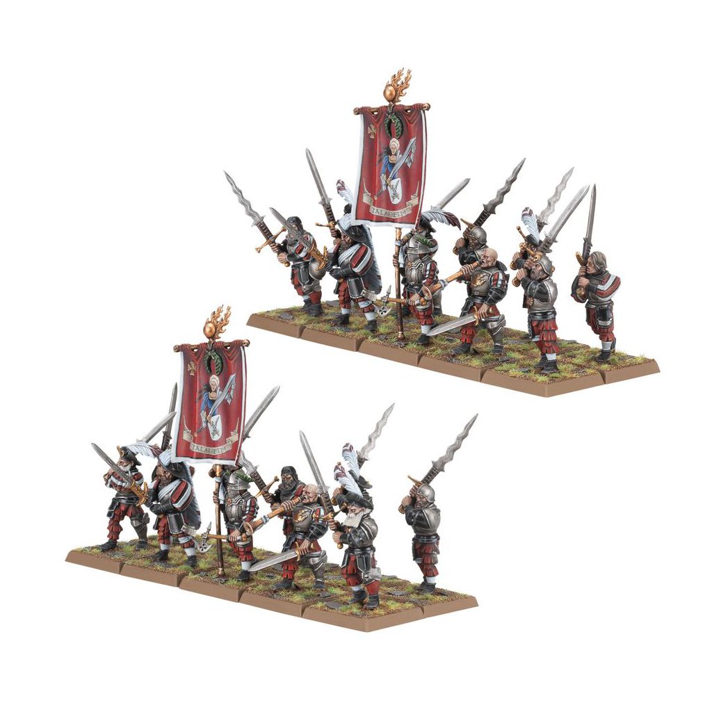 Ce kit en plastique permet d'assembler 20 Joueurs d'Épée de l'Empire pour les armées de l'Empire de l'Homme dans les parties de Warhammer: The Old World. Ces soldats de mêlée d'élite peuvent être déployés en une grande unité de 20, ou en deux plus petites de 10, chacune accompagnée en option d'un Champion, d'un musicien et d'un porte-étendard. Le musicien avec son clairon et le porte-étendard peuvent être équipés au choix d'une hache ou d'une épée comme arme de base, et vous pouvez choisir entre deux têtes différentes pour les hampes de bannière. Les bras, têtes et armes de ce kit sont interchangeables entre les figurines, ce qui vous permet de personnaliser facilement vos unités.