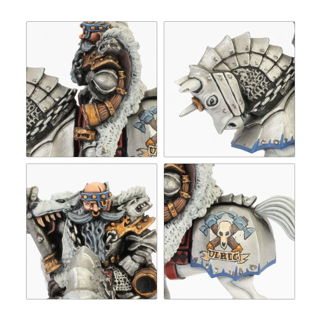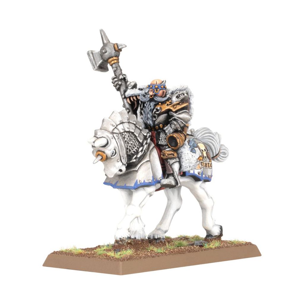 Ce kit en métal et en plastique permet d'assembler un Grand Maître des Chevaliers du Loup Blanc, un puissant meneur pour vos armées de l'Empire de l'Homme à Warhammer: The Old World. Ce guerrier à la longue barbe chevauche en arborant une exquise fourrure de loup blanc, et en maniant un marteau du loup brutal.