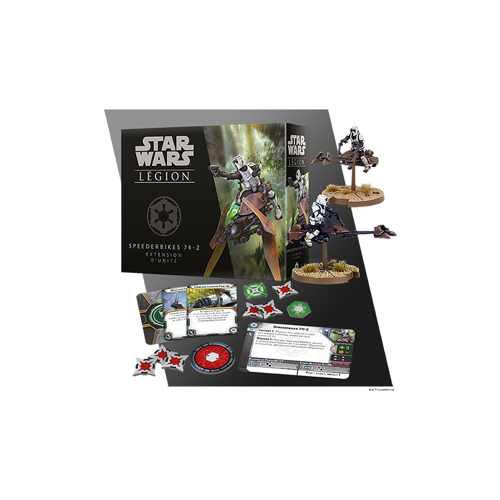 Cette extension contient deux figurines uniques de moto-speeder 74-Z très détaillées, invitant vos scouts impériaux à traverser le champ de bataille à une vitesse fulgurante. La figurine du chef d'escouade est unique à ce pack d'extension, tandis que l'autre figurine est une copie d'une figurine de moto-speeder 74-Z du jeu de base.