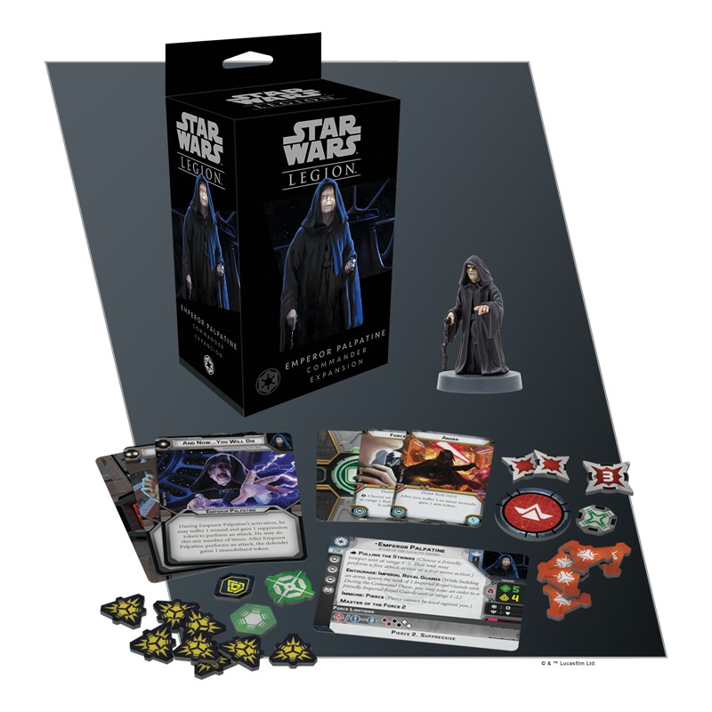 Dans l'extension pour commandant Empereur Palpatine, vous trouverez tout ce dont vous avez besoin pour ajouter l'Empereur Palpatine à votre armée en tant que commandant, à la tête des forces impériales, seul ou aux côtés d'un autre commandant impérial comme son apprenti, Dark Vador. Une seule figurine, non peinte et facile à assembler, représente un Empereur Palpatine masqué qui prépare son prochain coup, tandis que trois cartes d'amélioration vous permettent d'exploiter sa maîtrise du côté obscur de la Force. Enfin, trois nouvelles cartes de commandement vous offrent plus d'options pour déterminer vos plans de bataille, vous permettant d'utiliser les capacités de l'Empereur en tant que maître stratège.