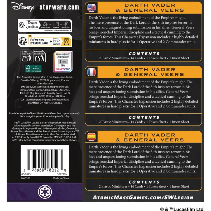 SW Légion Empire: Darth Vader & General Veers (x2 Figurines)