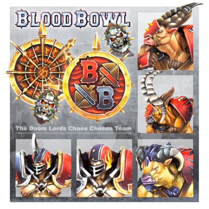 Ce kit plastique contient les composants nécessaires pour assembler les Doom Lords, une équipe d'Élus du Chaos pour Blood Bowl. L'équipe se compose de 4 Chaos Blockers et de 8 Beastmen – les têtes de ces derniers sont interchangeables, pour vous permettre d'aligner un éventail unique d'aberrations cornues! Quant aux Blockers, eux aussi proposent des têtes interchangeables.