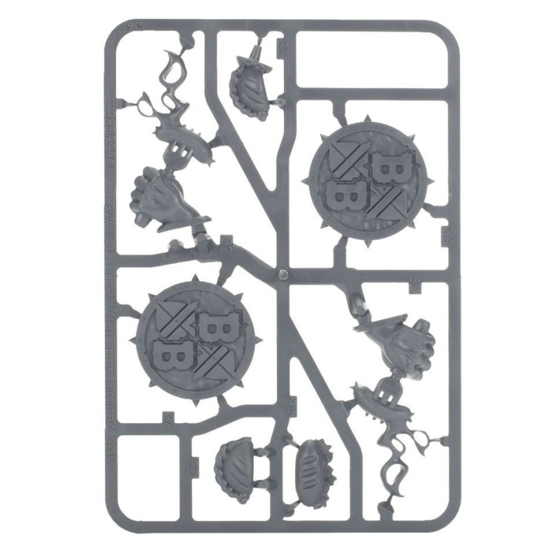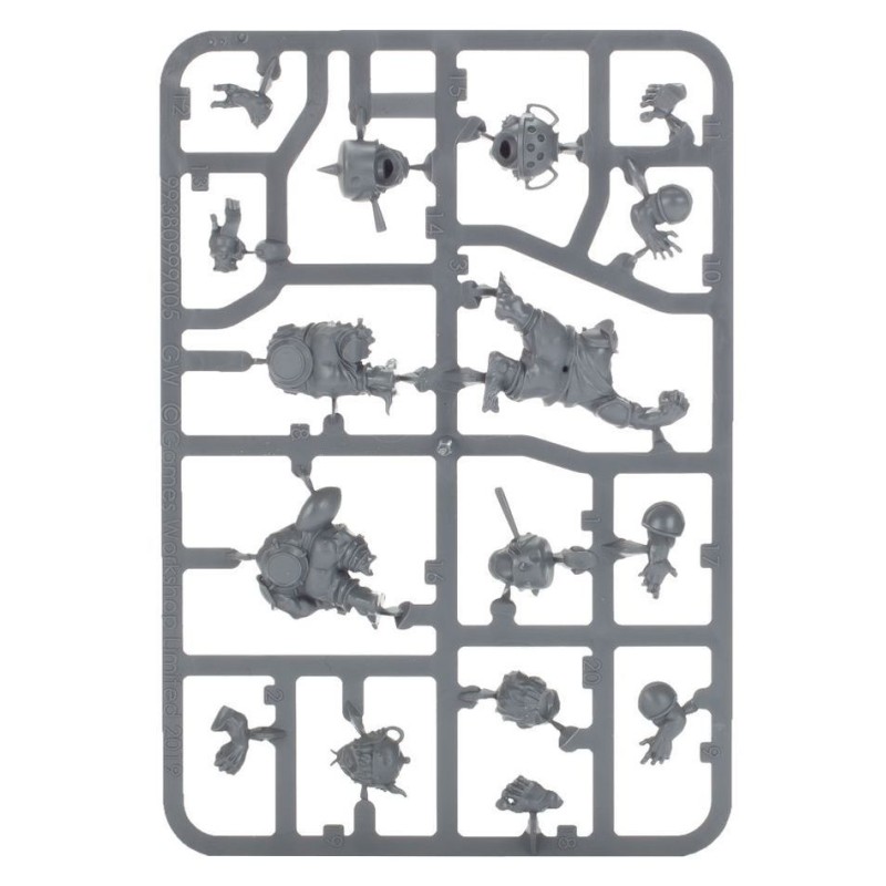 Ce kit plastique contient tous les composants nécessaires pour assembler les Greenfield Grasshuggers, une équipe de Halflings à l'usage des parties de Blood Bowl. Vous recevrez 2 Catchers, 2 Hefties et 8 Hopefuls, plus une feuille d'équipe. Fourni avec une planche de décalcomanies, 2 pions de tour ornés de saucisses, 3 "ballons" en plus, et 12 socles ronds Citadel de 32mm avec un trou prévu pour y fixer le ballon.