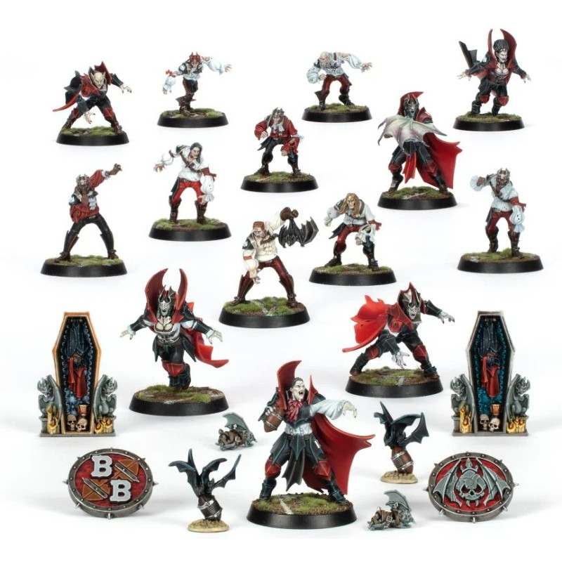 Le kit est composé de 96 éléments en plastique et est fourni avec 14x socles ronds Citadel de 32mm et 1x Planche de Décalcos d'Équipe de Vampires. Ces figurines sont fournies non peintes et nécessitent assemblage