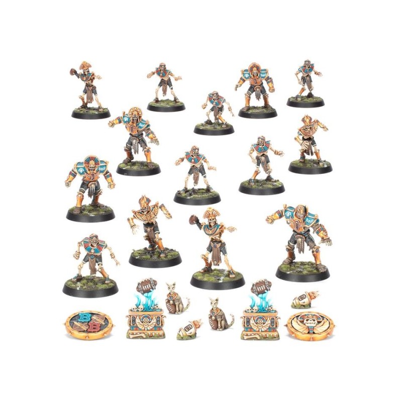 Ce kit plastique permet d'assembler une équipe de Rois des Tombes utilisable dans les matchs de Blood Bowl. Les Trois-quarts forment l'ossature – littéralement – de l'équipe, tandis que les Blitzers tirent profit de leur vitesse supérieure pour charger là où c'est nécessaire. Les Gardiens des Tombes sont des cogneurs brutaux, et les Lanceurs sont indispensables pour mettre la main sur le ballon.