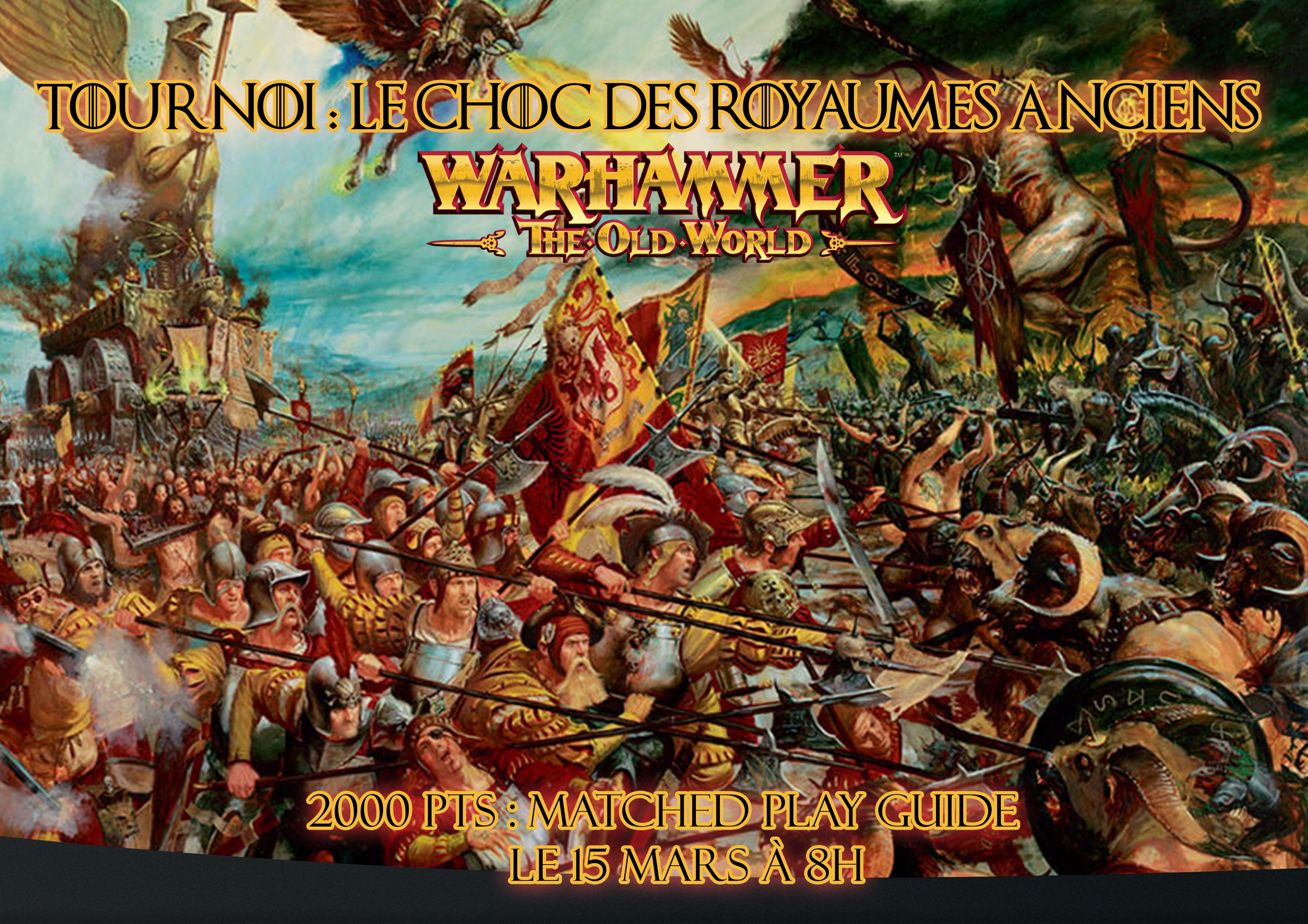 Tournoi The Old World chez HobbyMax le Dimanche 15 Mars! PAF:10 euros Lots: Bons d'achats en fonction du nombre de joueurs 12 places maximum Tournoi au format de 2000 points utilisant les règles du Matched Play. Accueil: 8h Début des parties: 8h30 Fin du...