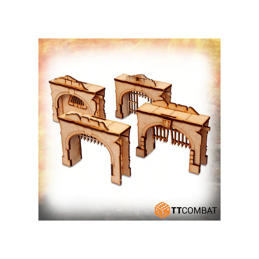 Comme tous nos kits Savage Domain, l' abbaye est complètement modulaire, utilisant des fiches simples pour connecter les pièces. Vous pouvez faire de longs murs, des cours closes et des environnements urbains denses.