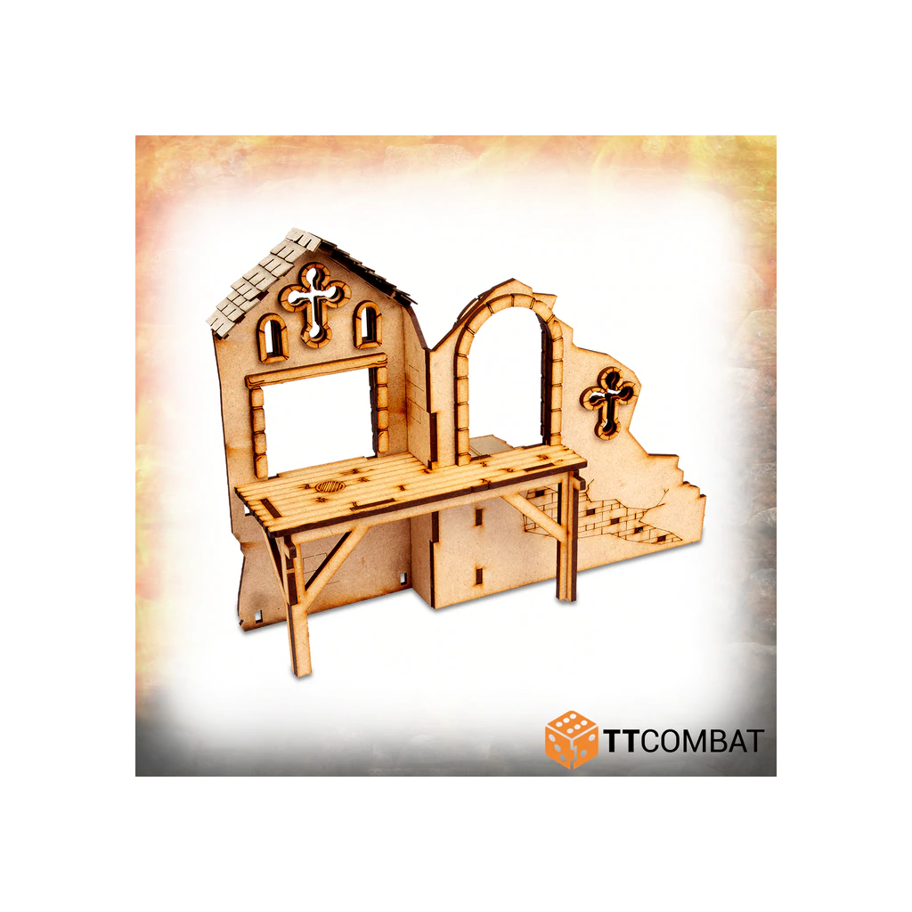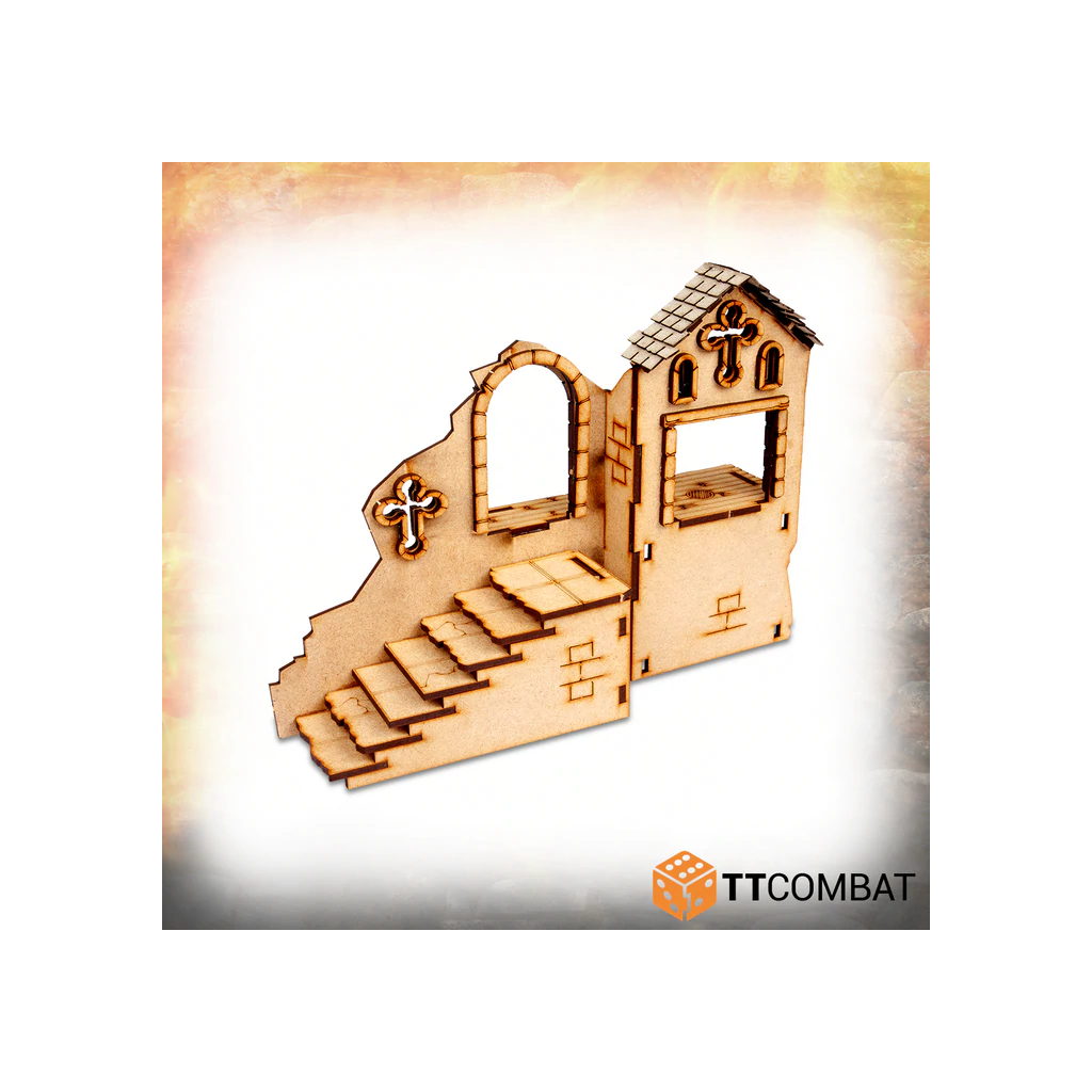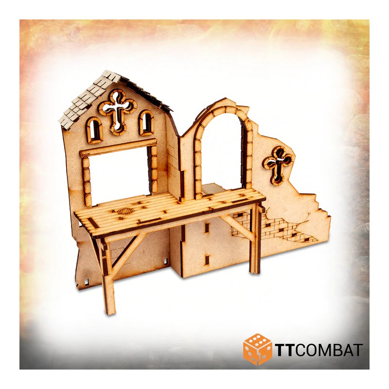 Savage Domain : Abandoned Abbey est fabriqué en MDF 3 mm et en carton gris 1 mm. Il s'agit d'un kit de décor idéal pour les jeux d'escarmouche fantastiques et les jeux de rôle, et il s'adapte parfaitement aux jeux et figurines de 28-32 mm.
