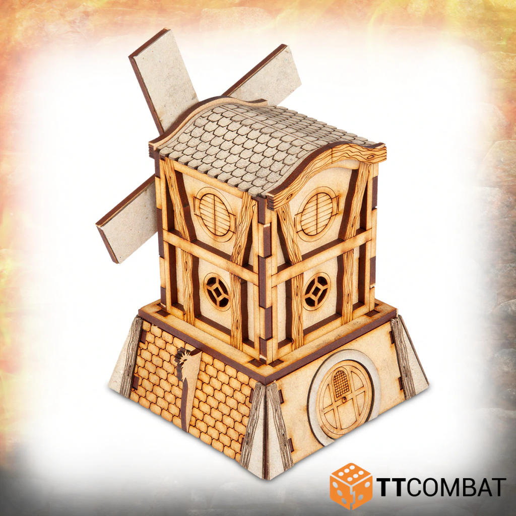 Le kit de décor Halfling Windmills est fabriqué en MDF de 3mm d'épaisseur et en carton gris d'1mm d'épaisseur. À assembler et à peindre.