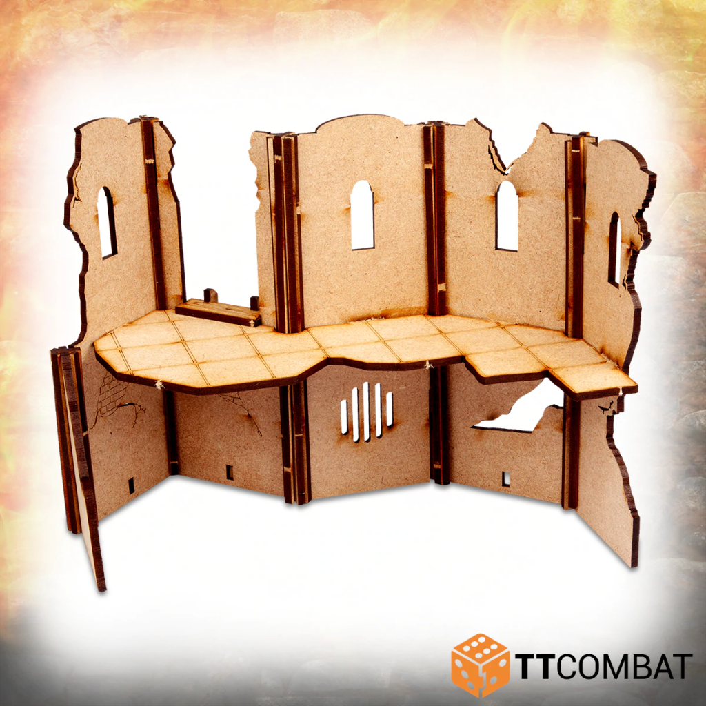 Savage Domain : Castle Town Walls est fabriqué en MDF 3 mm et en carton gris 1 mm. Il s'agit d'un kit de décor idéal pour les jeux d'escarmouches fantastiques et les jeux de rôle, et il s'adapte parfaitement aux jeux et figurines de 28-32 mm.