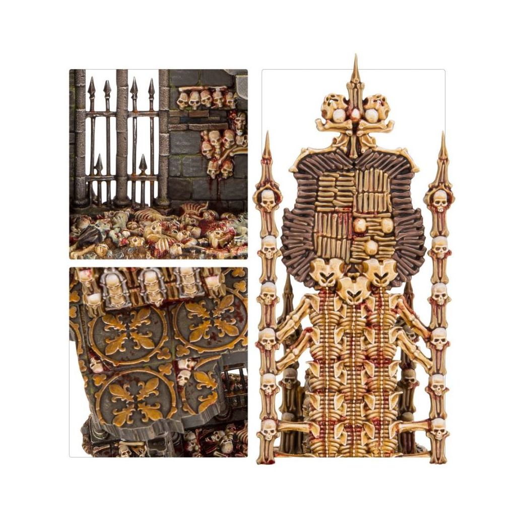 Le Charnel Throne est un élément de paysage disponible pour toutes les armées de Flesh-eater Courts. Il ne coûte aucun point d'armée, et inspirera vos unités en améliorant leur Bravoure, tout en réduisant celle des ennemis proches. De plus, les Abhorrant Archregents pourront utiliser le pouvoir du trône pour invoquer toujours plus d'unités au combat.